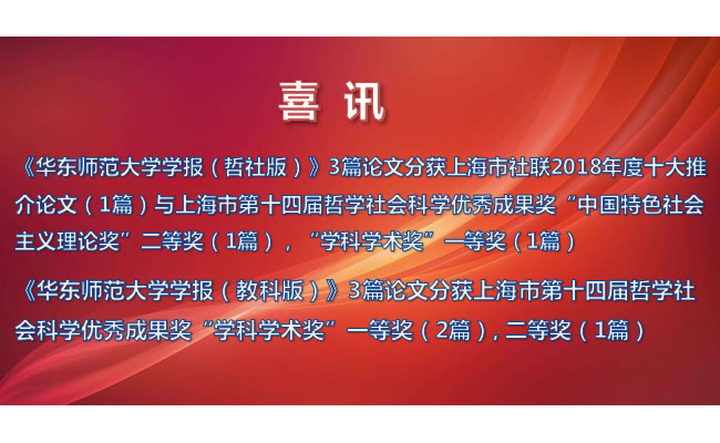 学报哲社版、教科版6篇论文分获上海市社联2018年度十大推介论文(1篇)与上海市第十四届哲学社会科学优秀成果奖