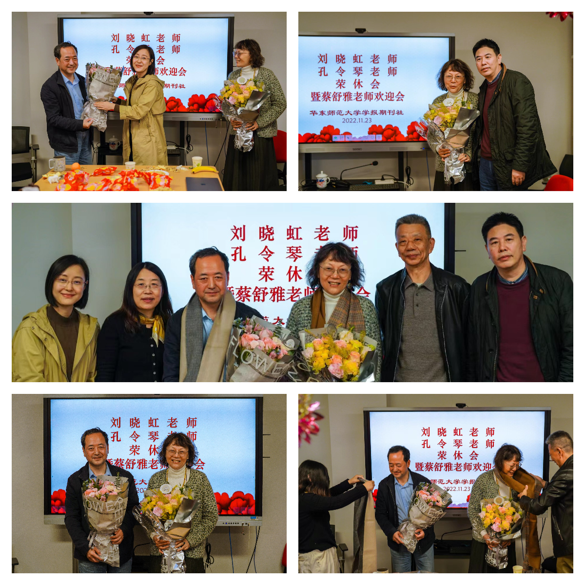 2022年11月23日,学报期刊社刘晓虹、孔令琴老师荣休会在会议室举行,校长助理吴瑞君教授和全社同事出席了此次温馨且隆重的会议。工会小组长范笑仙和党支部副书记周萍主持并组织了相关活动。